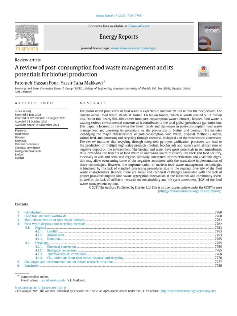A Review of Post-Consumption Food Waste Management and Its Potentials ...