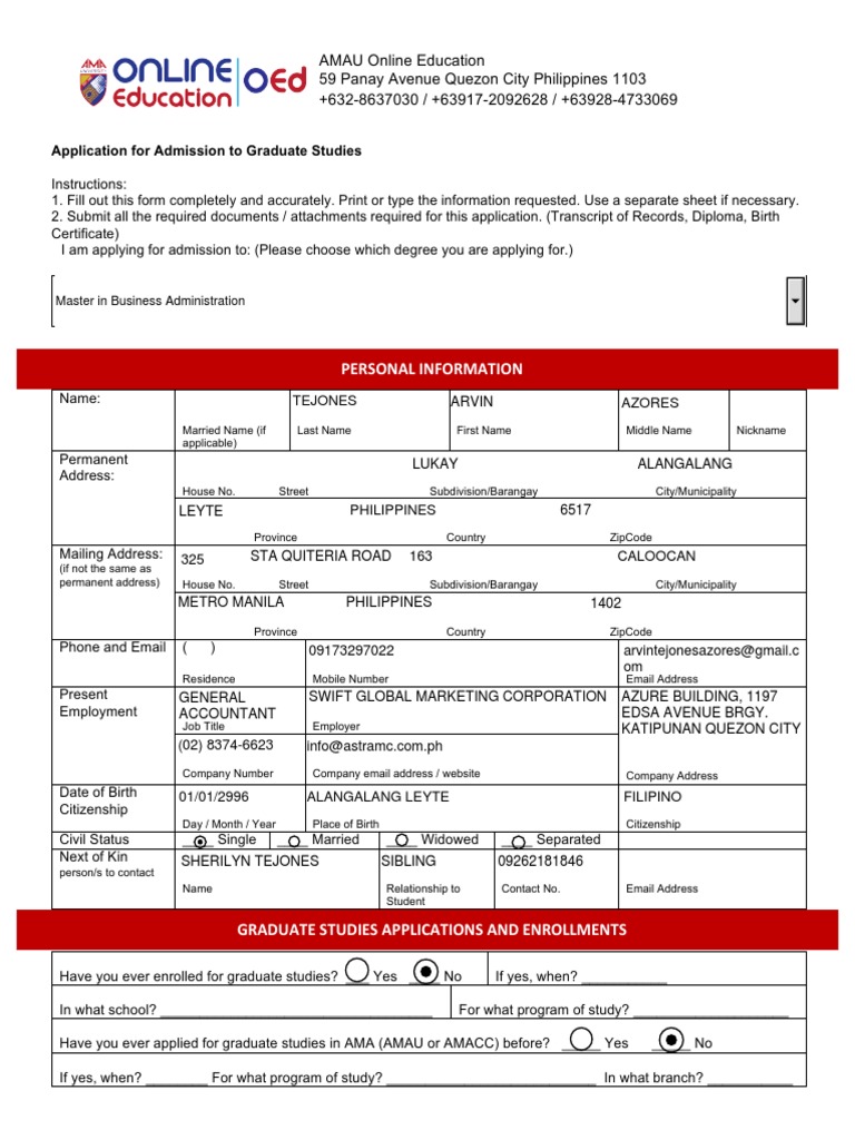Post Grad Form AMAOED | PDF | Postgraduate Education