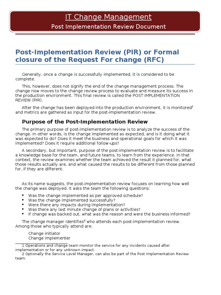 Post Implementation Review Template – ITSM Docs - ITSM Documents ...