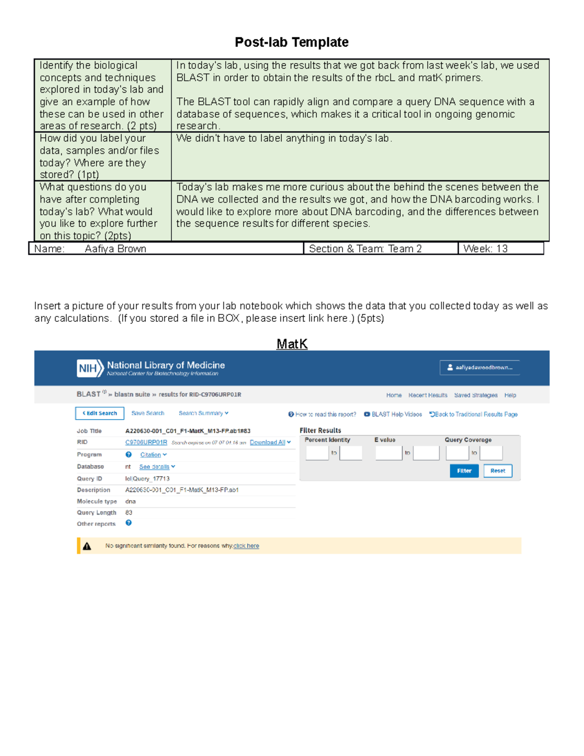 Week 5 - PostLab.docx - Post-lab Template Identify the biological ...