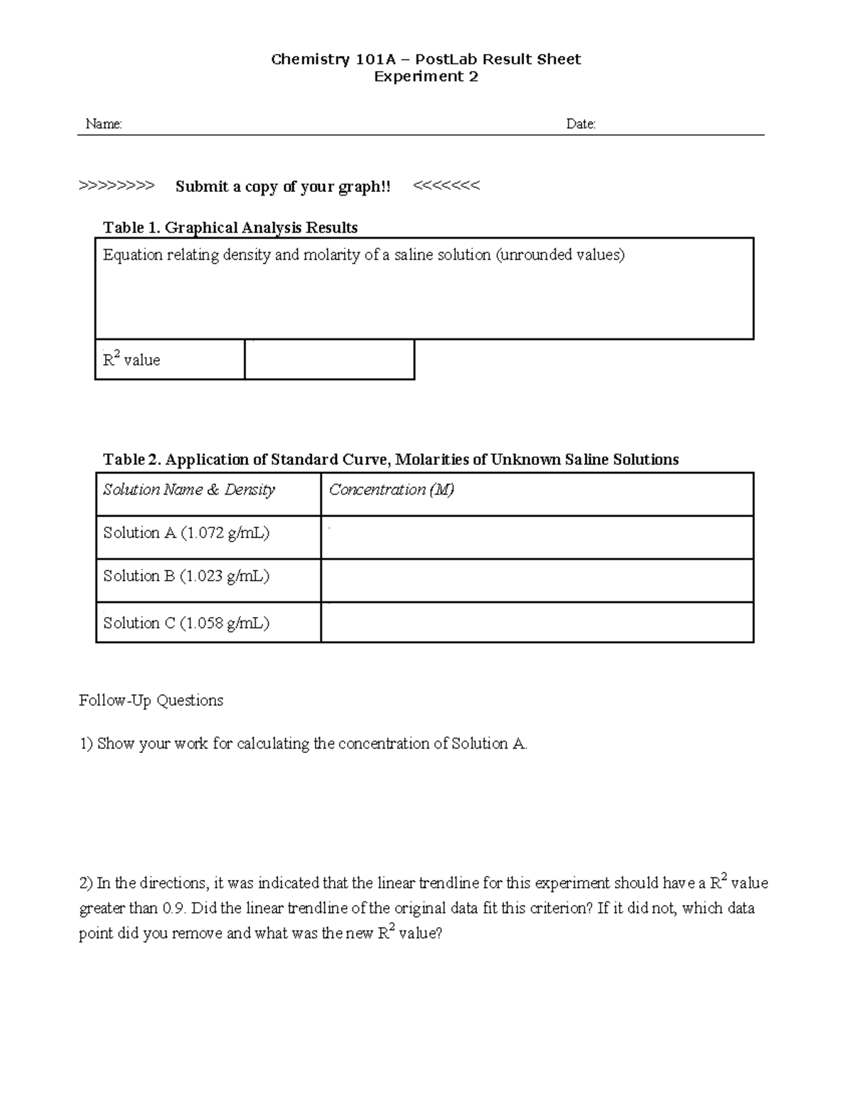Post Lab 02 - post-lab - Chemistry 101A – PostLab Result Sheet ...