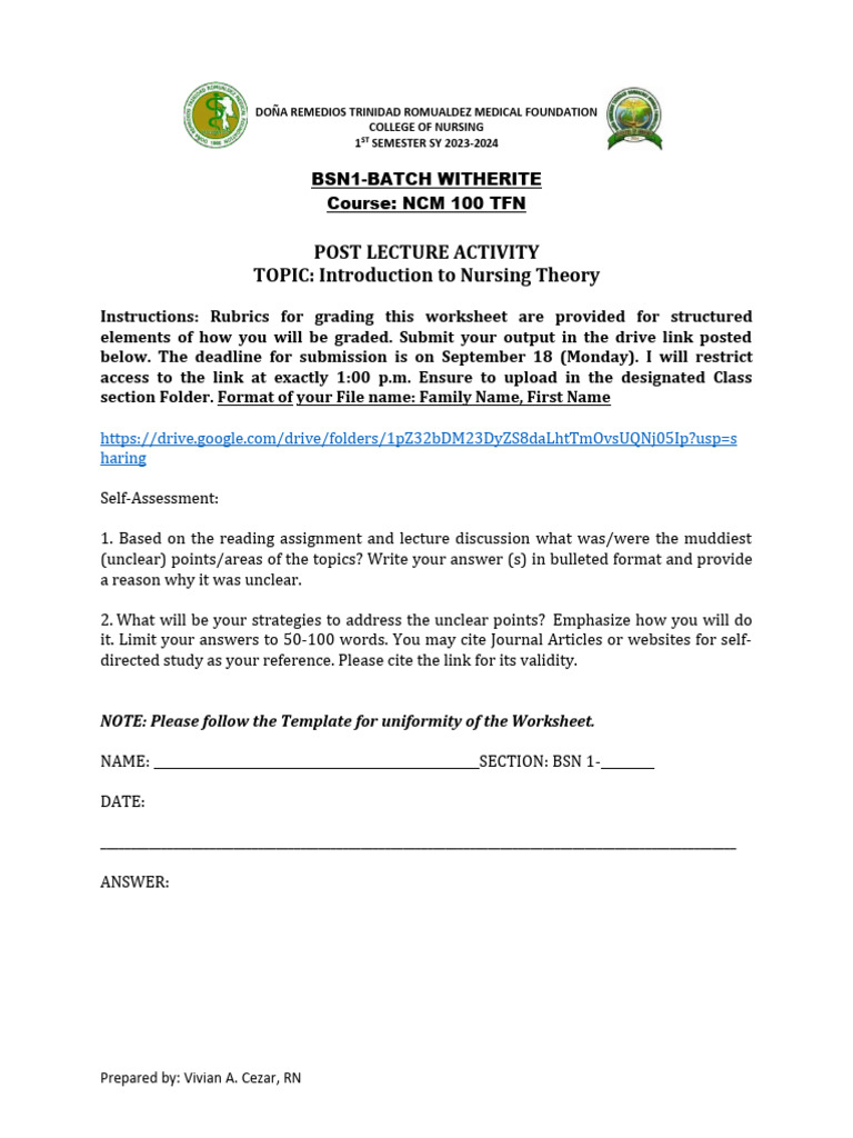 TFN-POST-LECTURE-ACTIVITY-1-INTRODUCTION | PDF | Goal Setting | Nursing