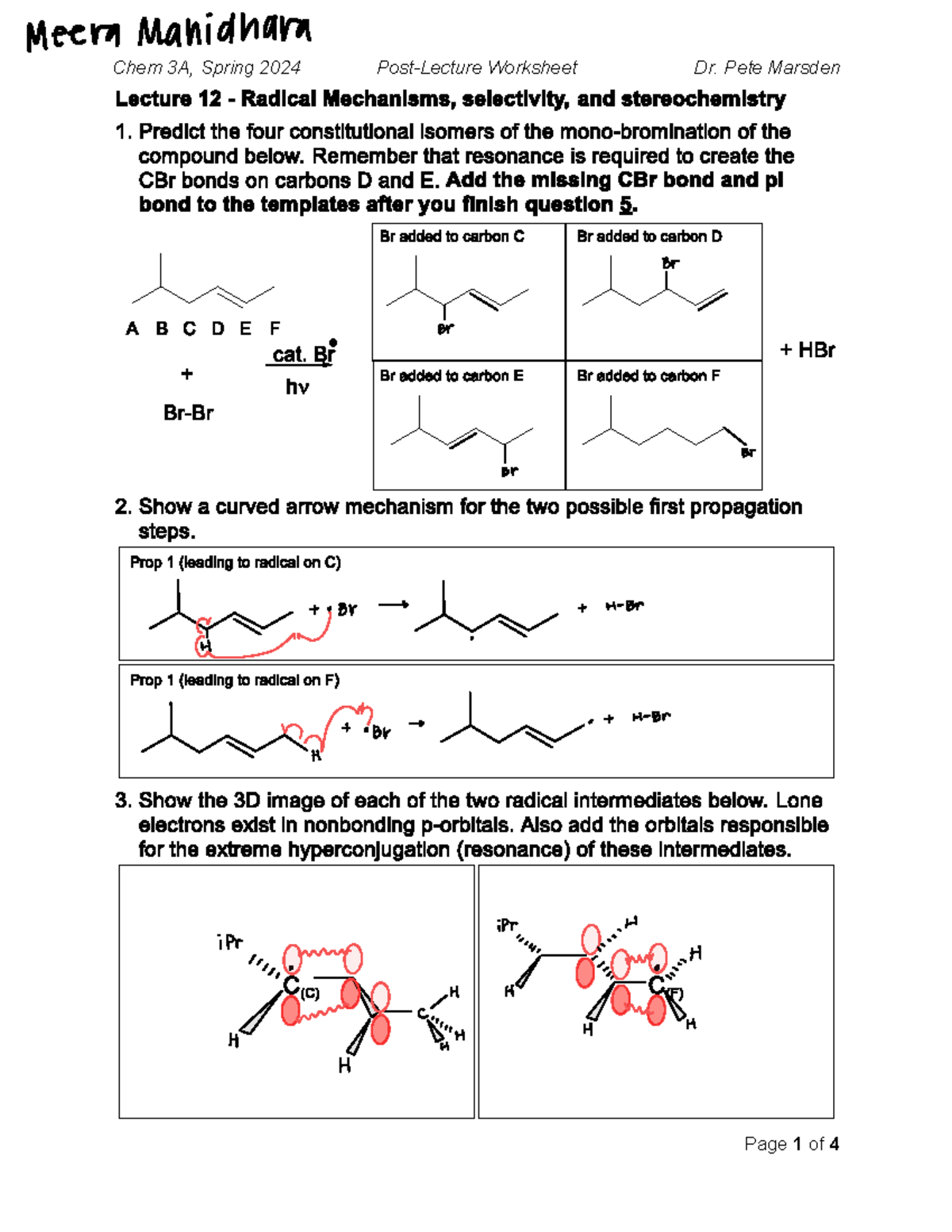 Post Lecture Worksheet 3 - © Dr. MaryAnn Robak – Chem 3A Fall 202 5 ...