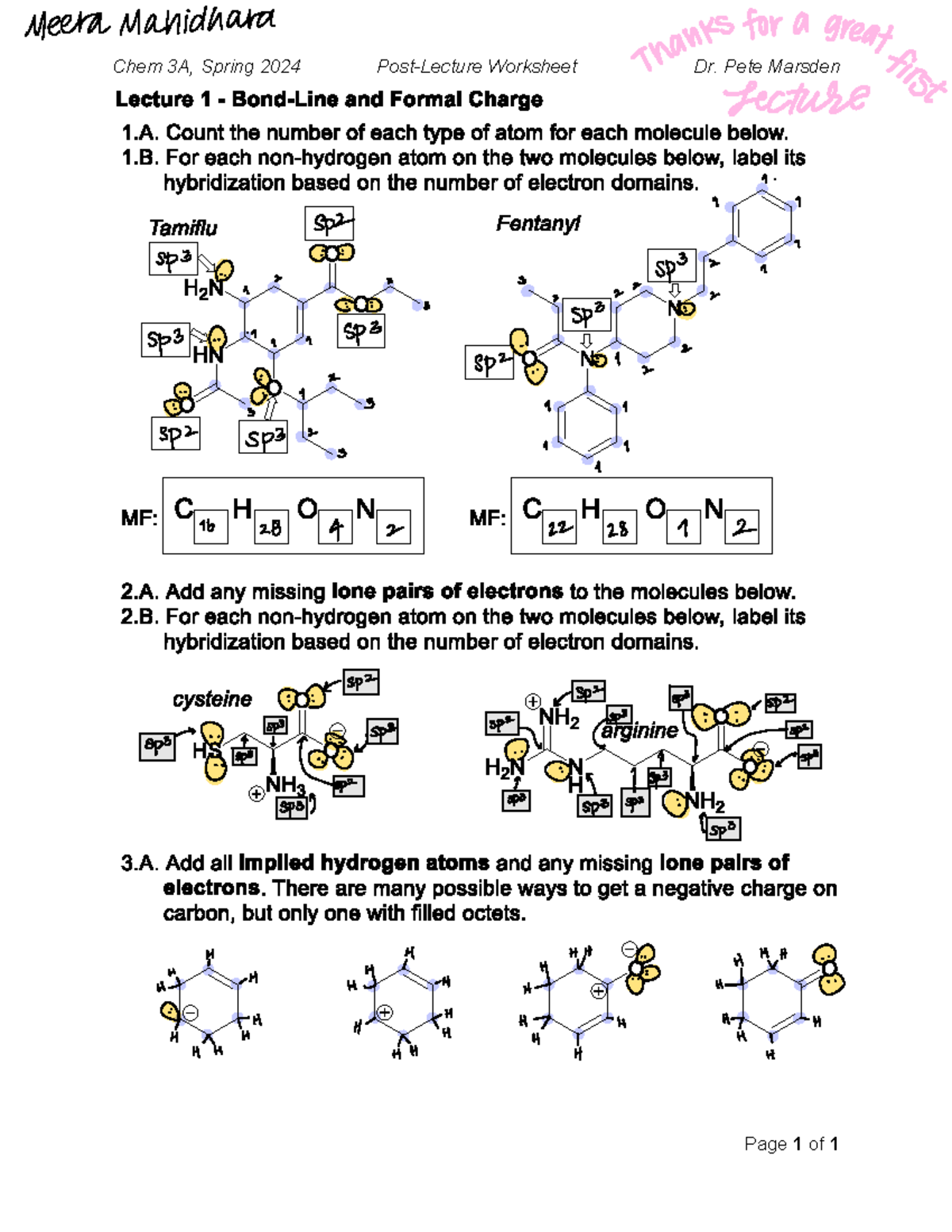 Chem 3A - Summer 2024 Post-Lecture Worksheet 1 by Dr. Marsden - Studocu