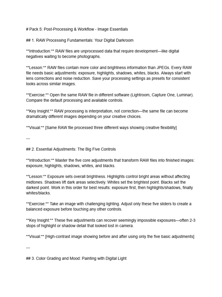 # Pack 5 - Post-Processing & Workflow - Photo Bites | PDF | Raw Image ...