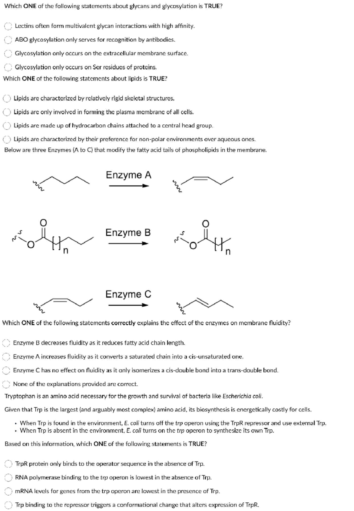POP Quiz 4 - Glycans, Lipids, and Trp Operon Practice Questions - Studocu