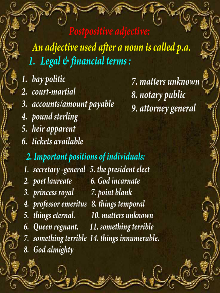Postpositive position | adjective position in english grammar # ...