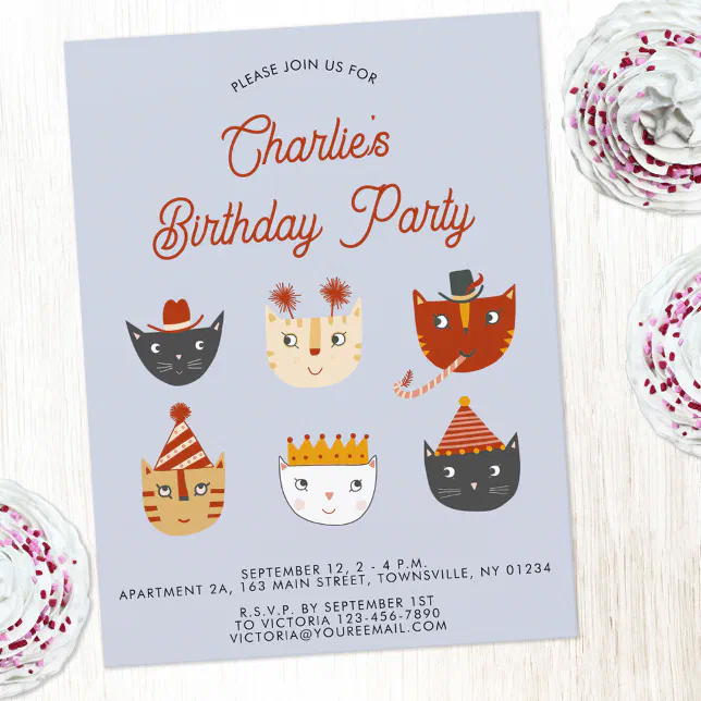 Fun Cat Personalised Birthday Party Invitation Postcard | Zazzle
