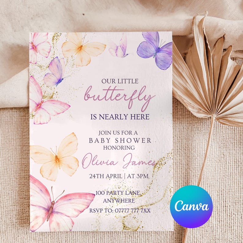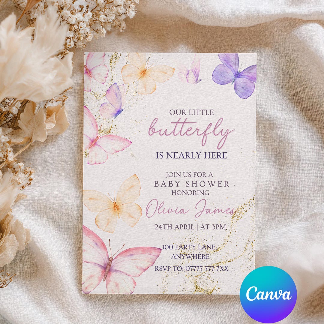 Pink Butterfly Baby Shower Invite, Girl Baby Shower Invitation Template ...