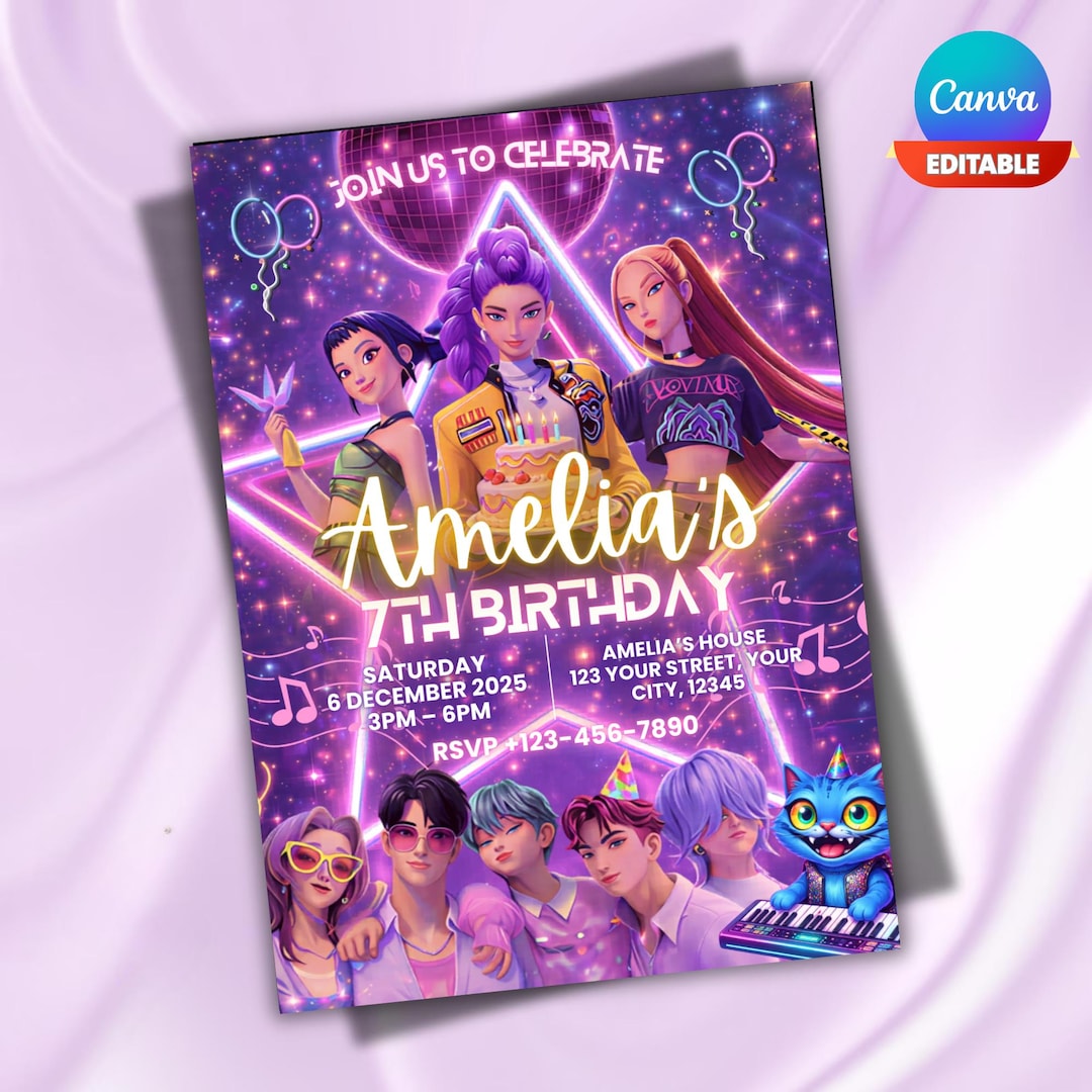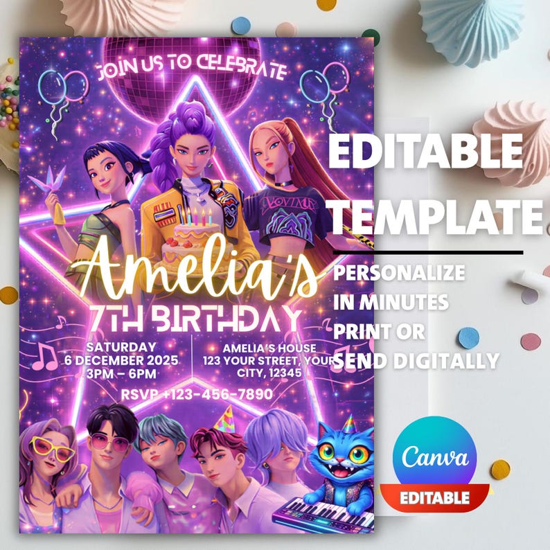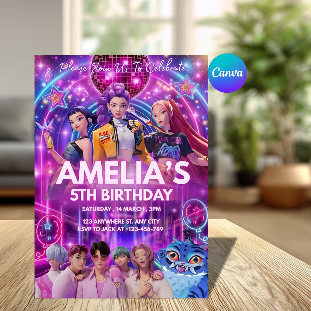 Kpop Demon Hunters Birthday Invitation Template | Editable Canva ...