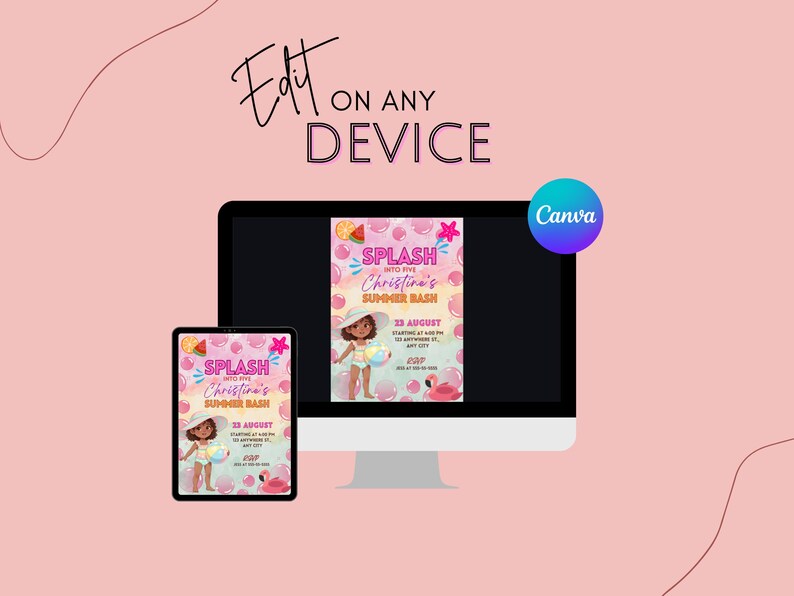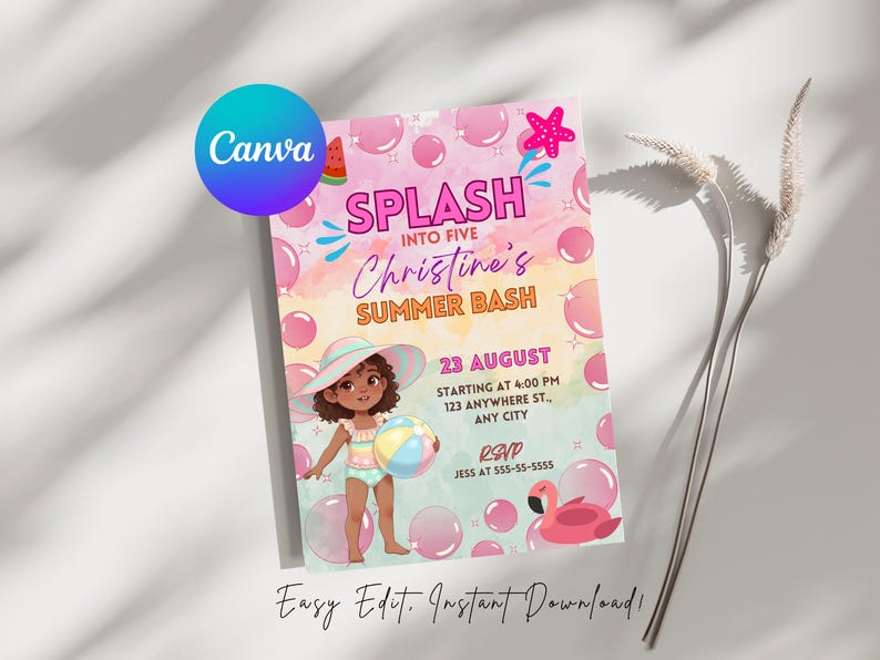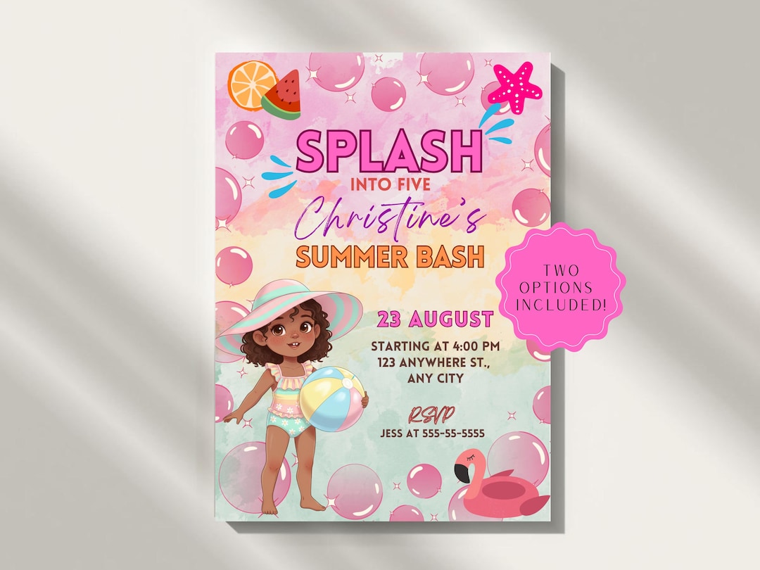 Splash Summer Birthday Invitation, TWO Girl Pool Party Templates ...