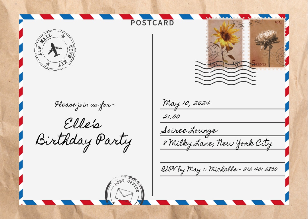 Postcard Birthday Invitation | Customizable Template | Editable Canva ...