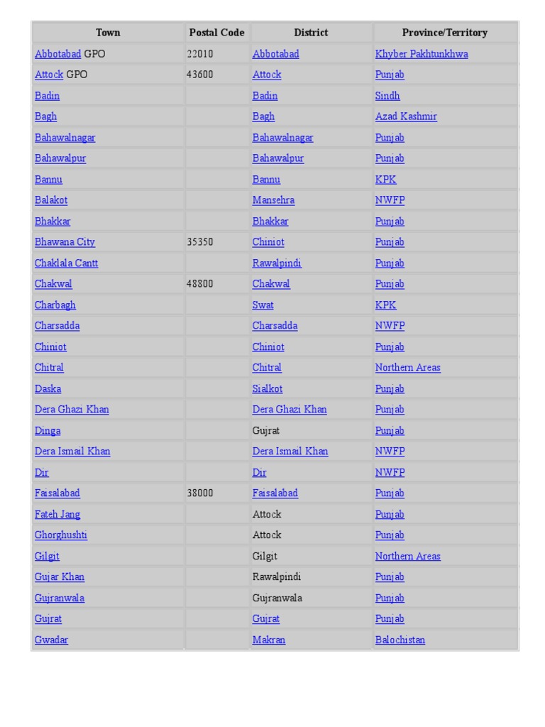 List of Postal Codes in Pakistan - Wikipedia | PDF | Karachi | Khyber ...