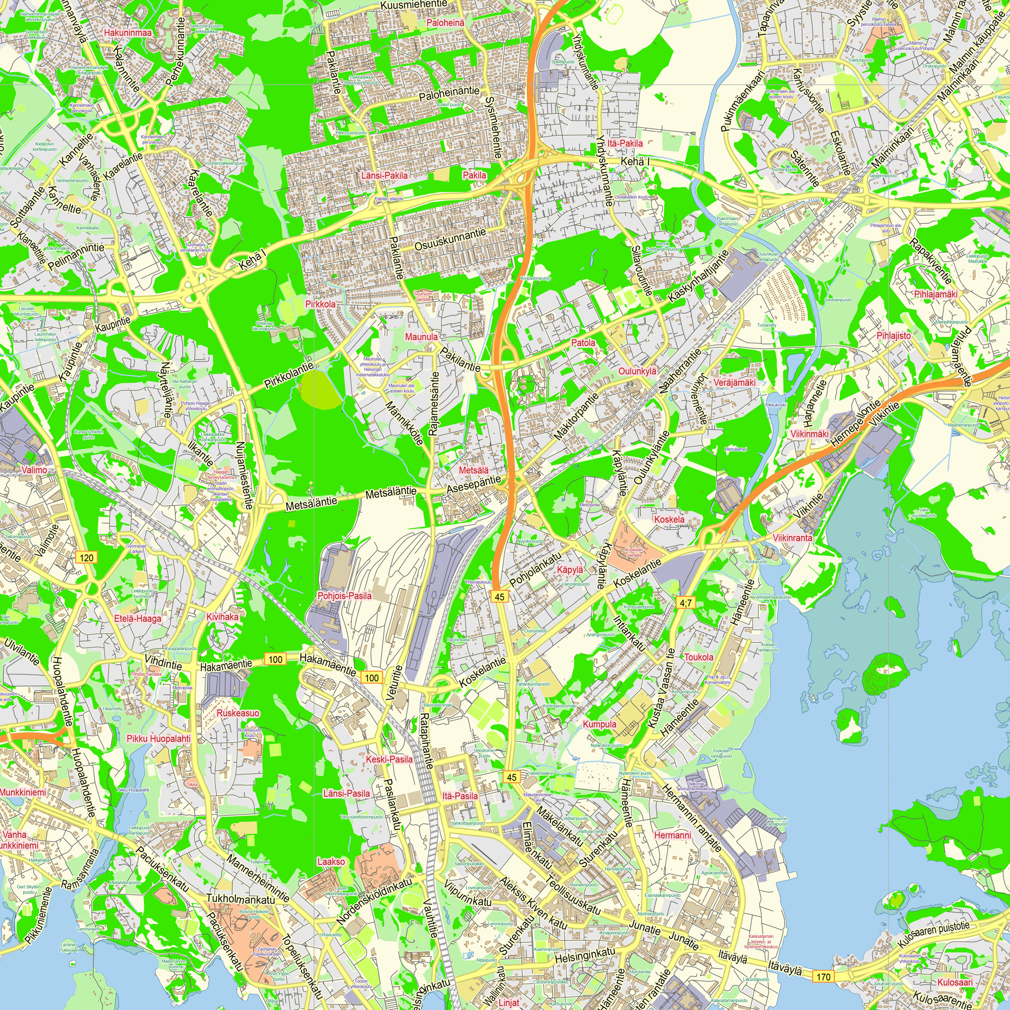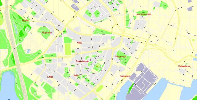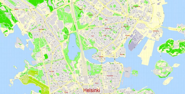 Helsinki Finland Printable Vector Map, exact detailed City Plan, 100 ...