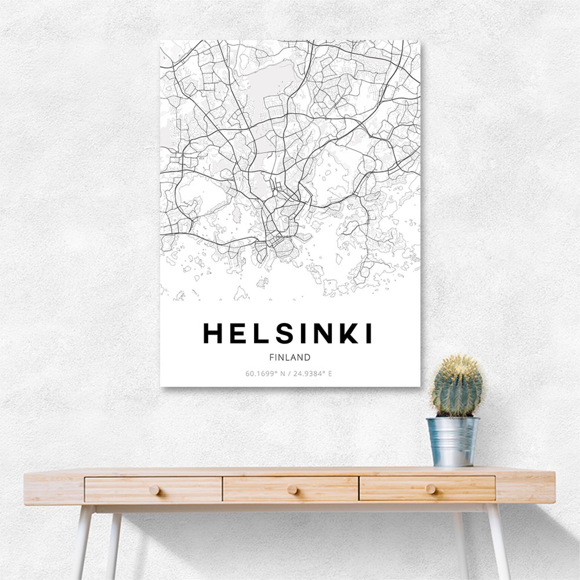 Poster Helsinki white | Wall Art | 3+1 FREE | UKposters | Helsinki, Map ...