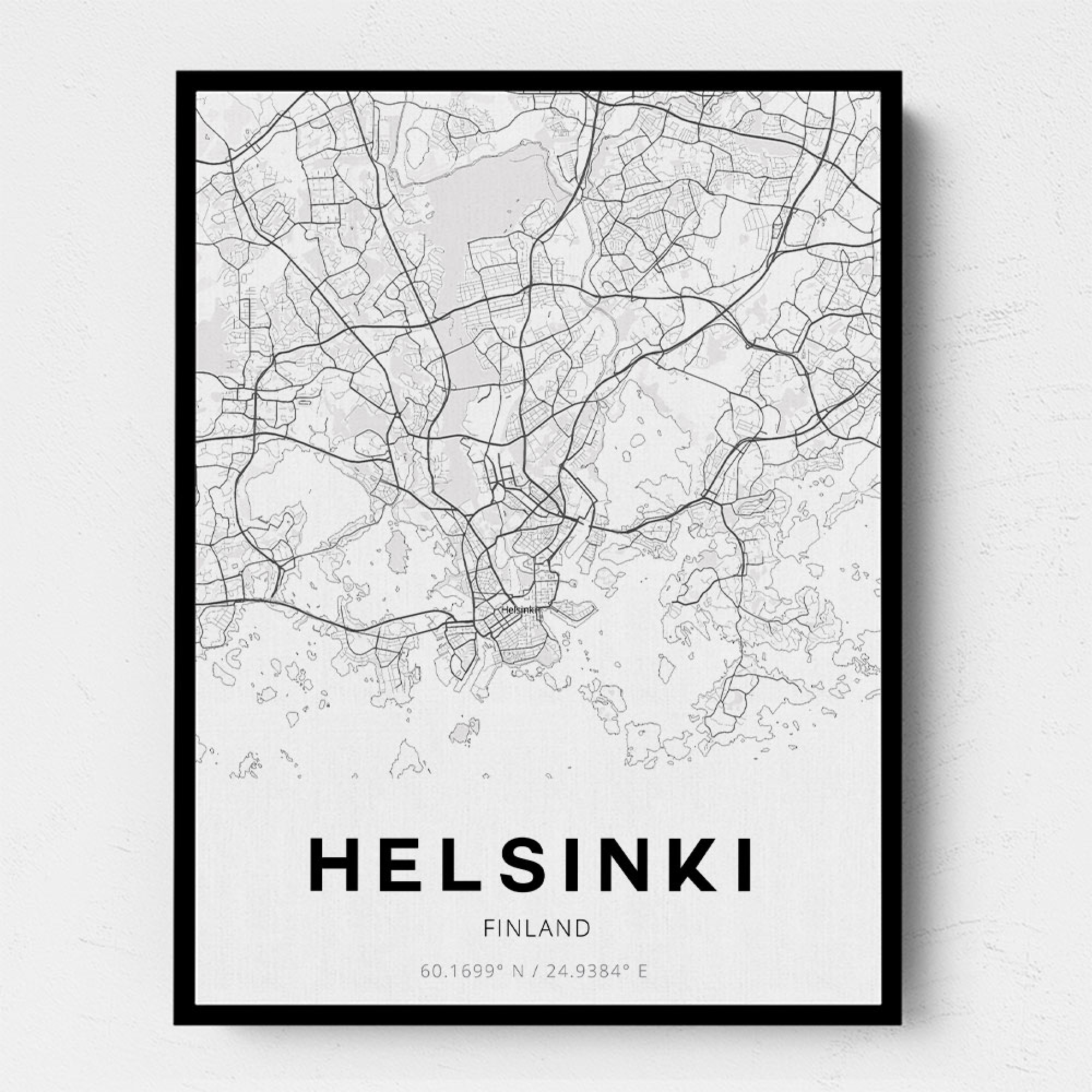 Poster with a map of Helsinki | Black and white prints of cities and ...