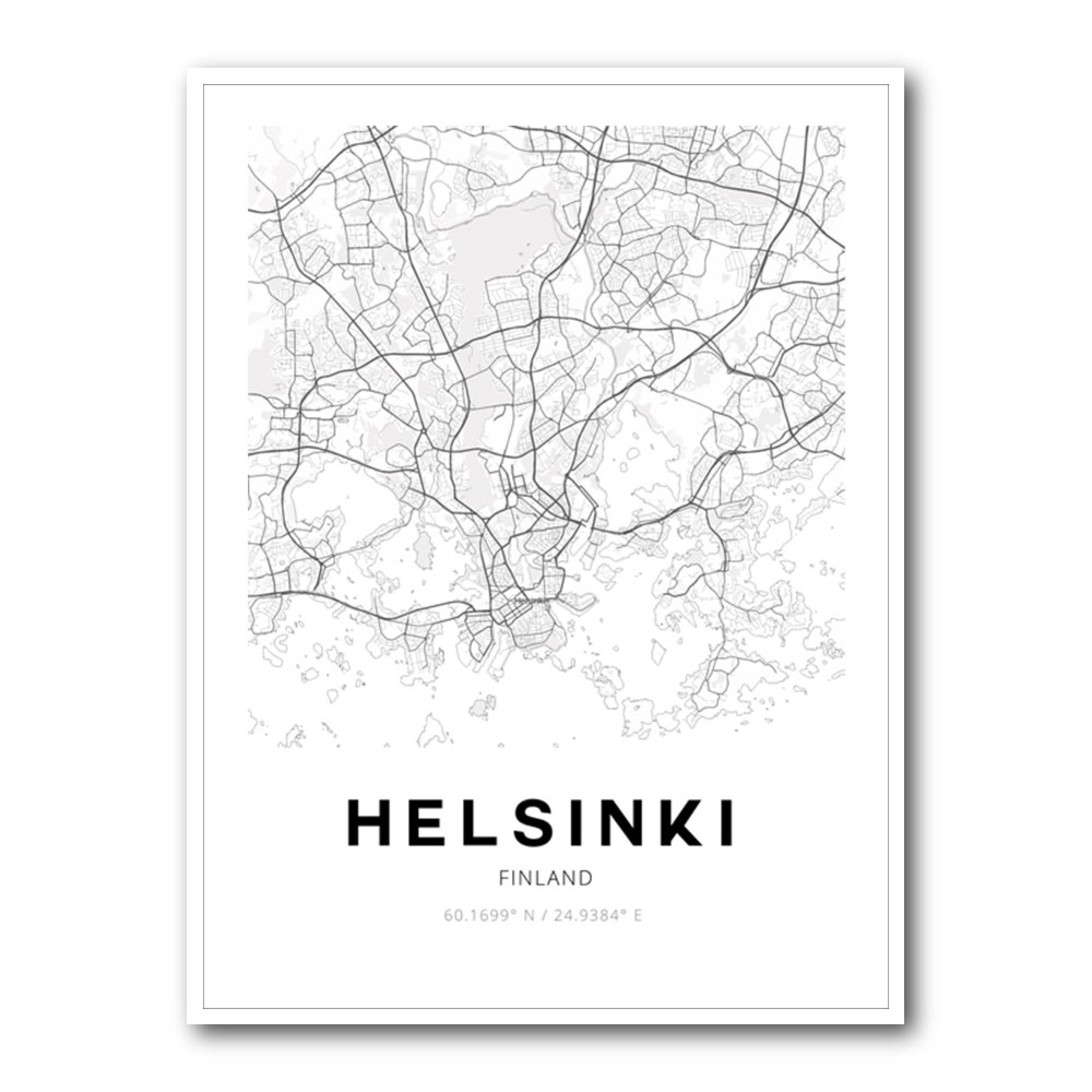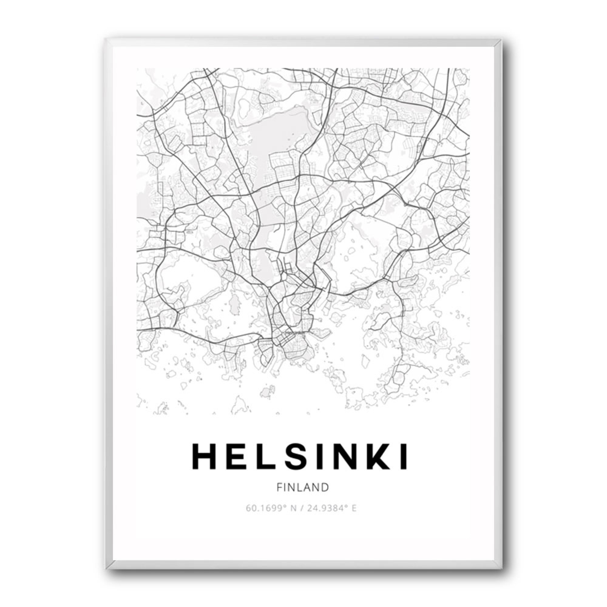Mapa Helsinki white ǀ Mapy všech měst a států na zeď ǀ Posters.cz