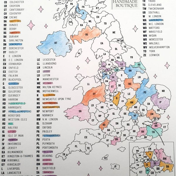 PERSONALISED UK Postcode Sales Map, Business Colour in Map, Etsy Sales ...
