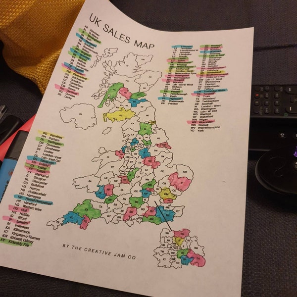 Editable UK Postcode Sales Map: Business Tracker (printable) - Etsy