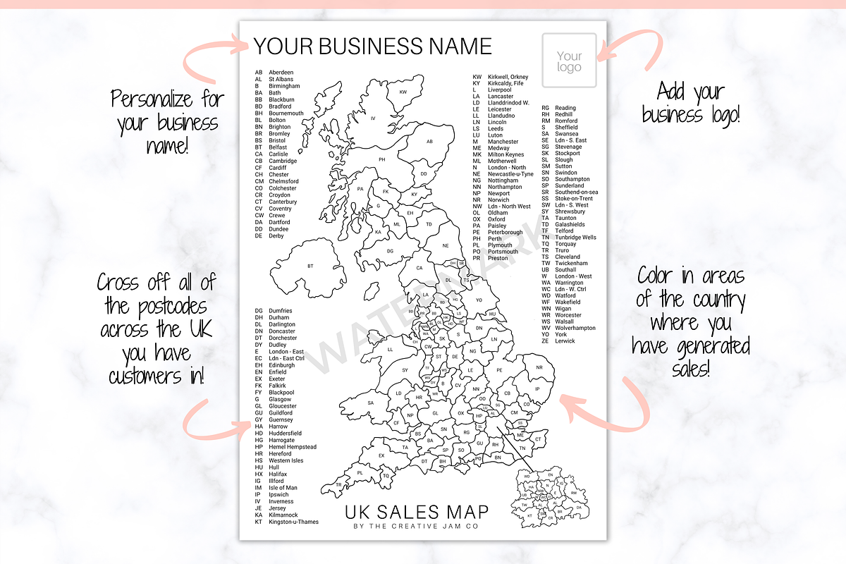 UK Postcode Sales Map DIGITAL DOWNLOAD Small Business | Etsy