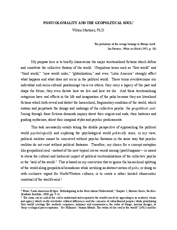 (PDF) Postcoloniality and the Geopolitical Soul