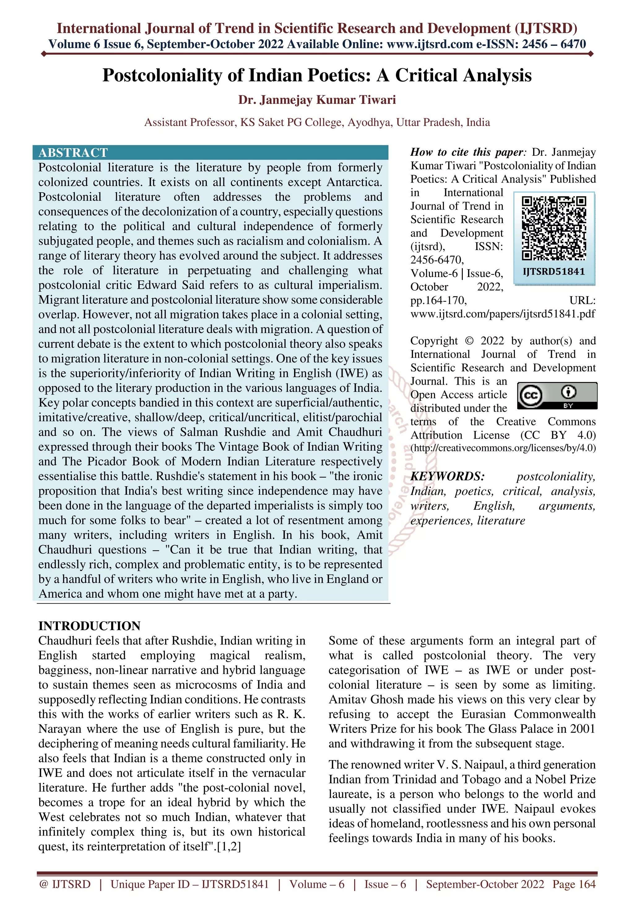 Postcoloniality of Indian Poetics A Critical Analysis | PDF | Free Download
