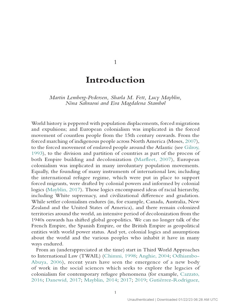 2023 Irl 8 Week 1 Postcoloniality and Forced Migration | PDF ...