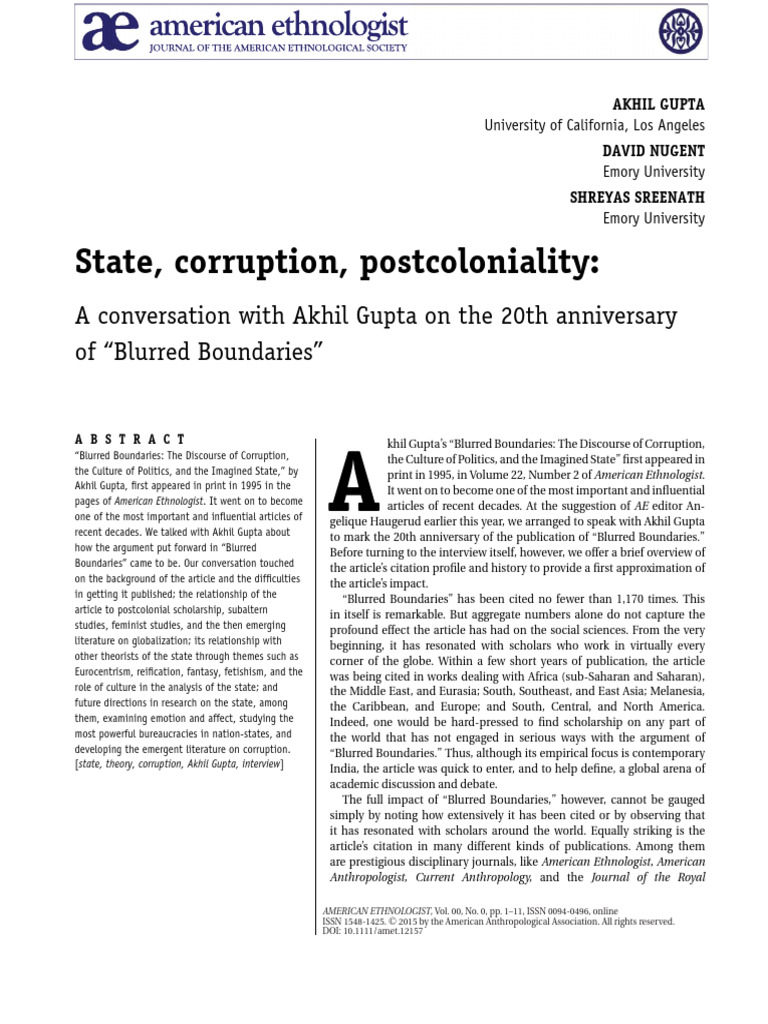 State Corruption Postcoloniality | PDF | Ethnography | Anthropology