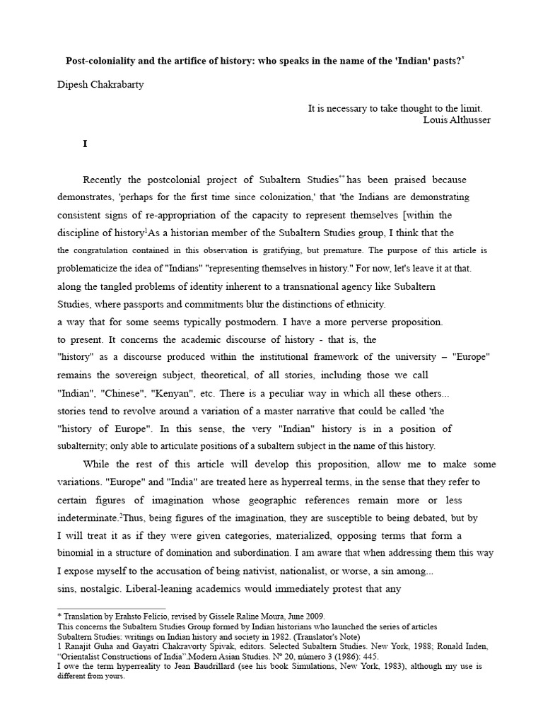 CHAKRABARTY, Dipesh - Postcoloniality and the Artifice of History | PDF ...