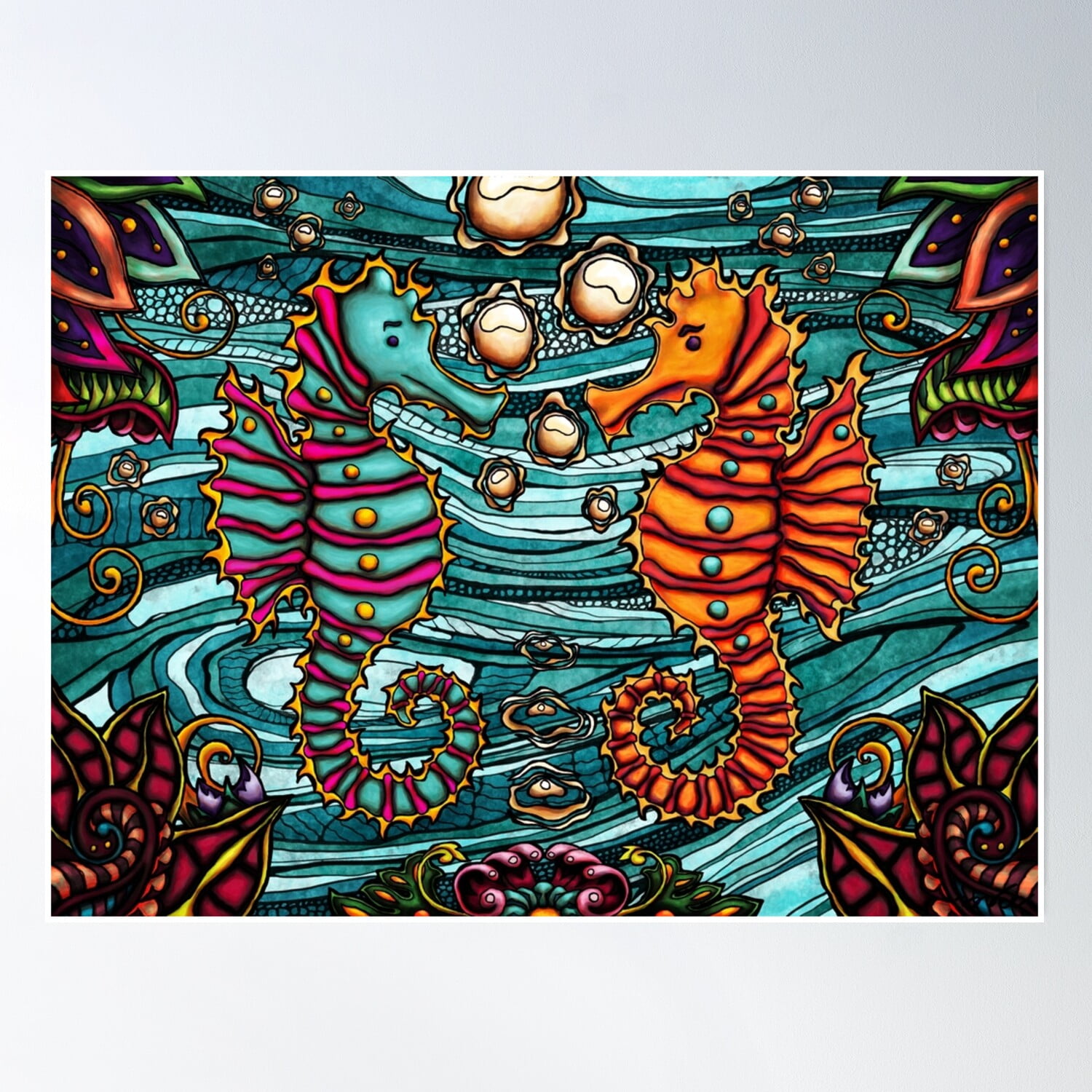 Modroom Seahorses Couple With Bright Complementary Colors, Ocean Life ...