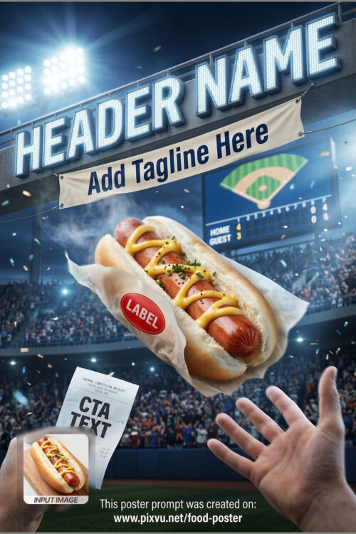 Free Stadium POV Hotdog Poster Gemini AI Prompt - Pixvu
