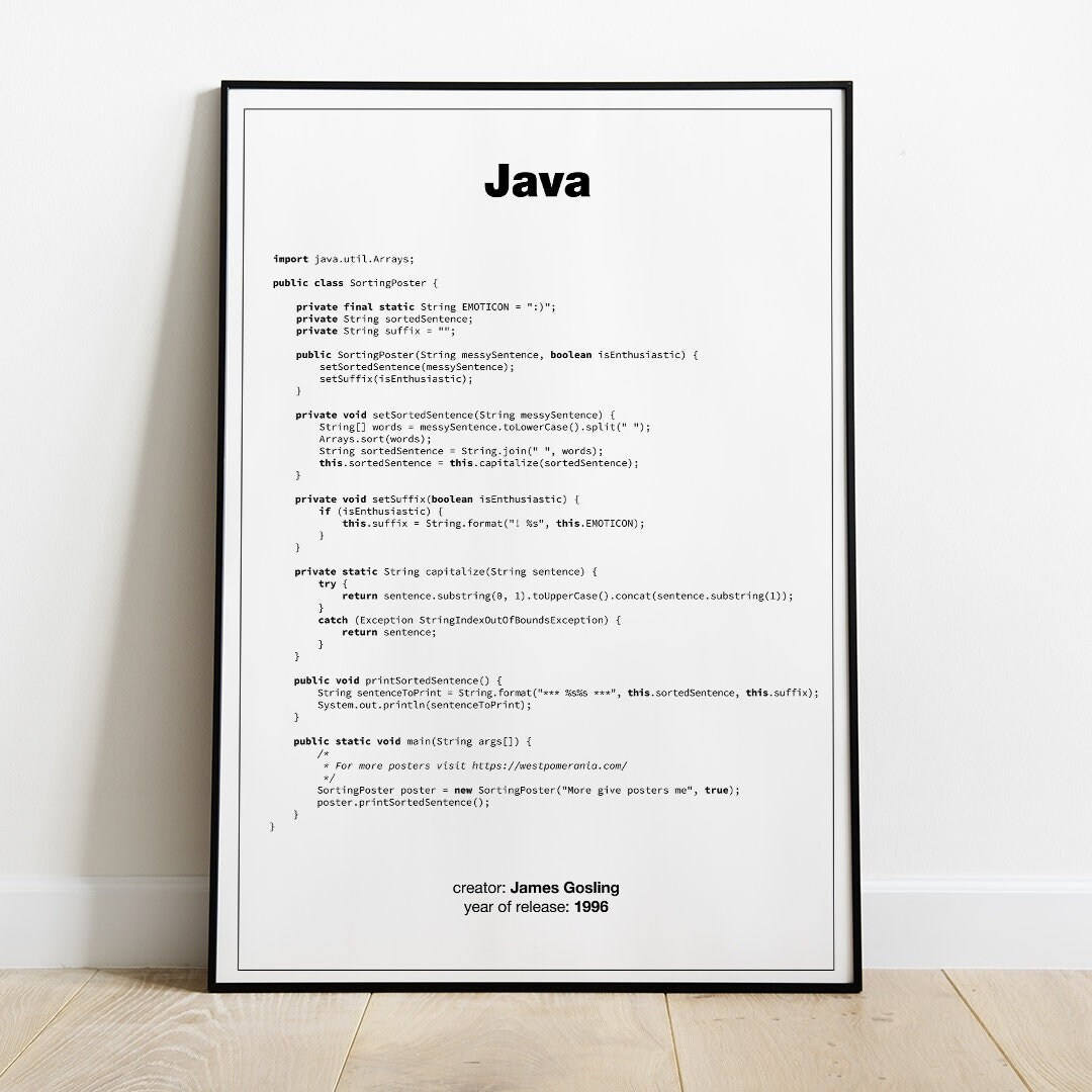 Java Code Poster Code Art Print Gift for Java Developer Gigt for ...