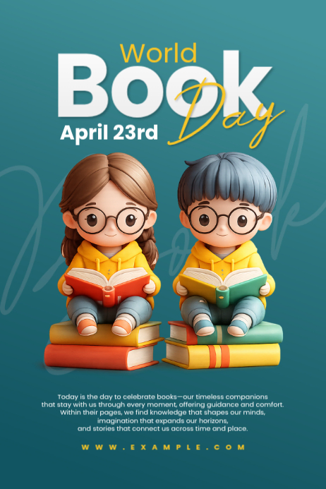 Turquoise Joyful World Book Day Poster Template | PosterMyWall