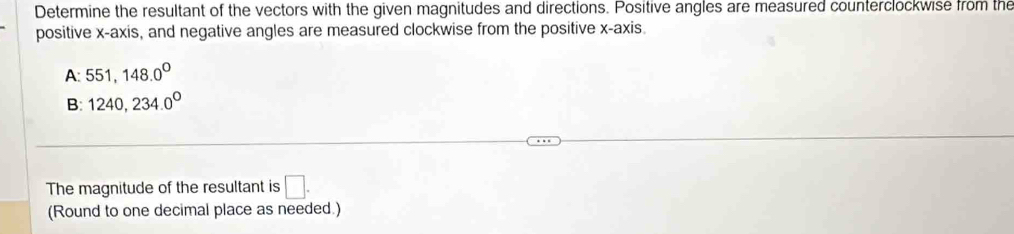 Solved: Determine the resultant of the vectors with the given ...