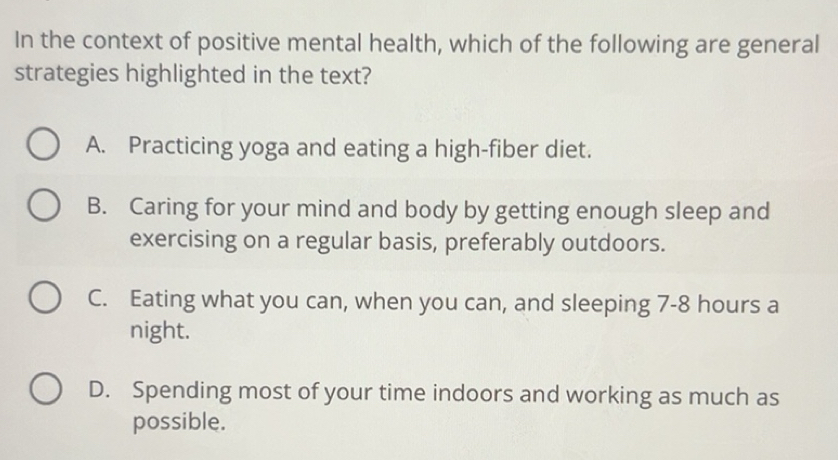 Solved: In the context of positive mental health, which of the ...