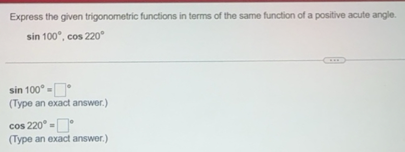 Solved: Express the given trigonometric functions in terms of the same ...