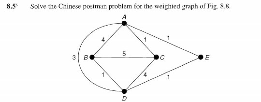 Solved 8.5 Solve the Chinese postman problem for the | Chegg.com
