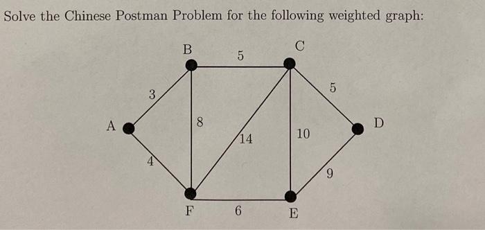 Solved Solve the chinese postman problem for the weighted | Chegg.com