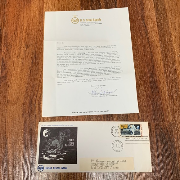 US Postmaster | Other | First Man On Moon Us Steel First Day Of Issue ...