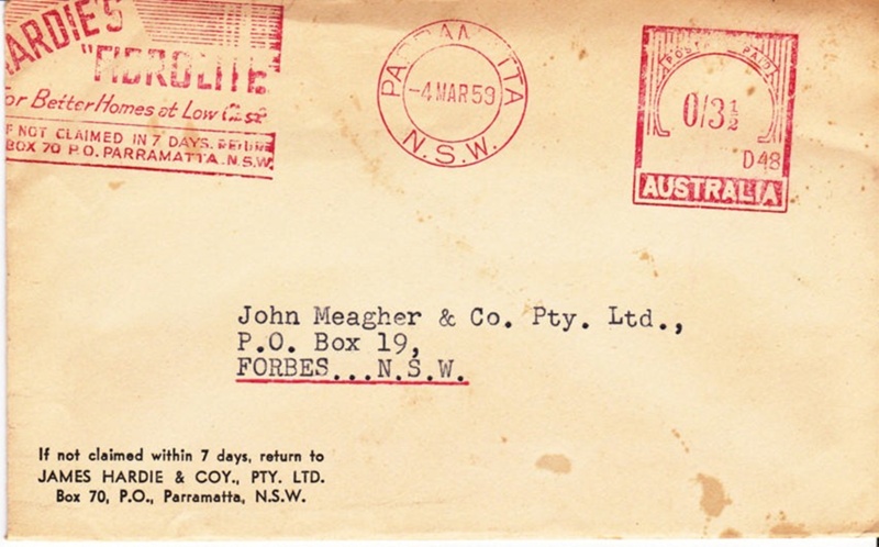Envelope from James Hardie & Coy, Sydney, postmarked 4 Mar 1959.; FFHG ...