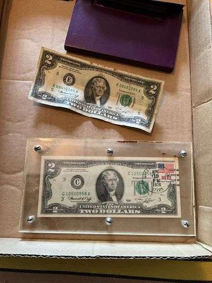 1988 US Mint proof set, two 1976 $2.00 bills, one is postmarked first ...