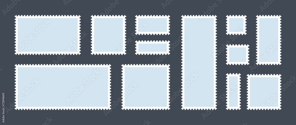 Postage stamp template frames set. Borders, backdrops for postcards ...
