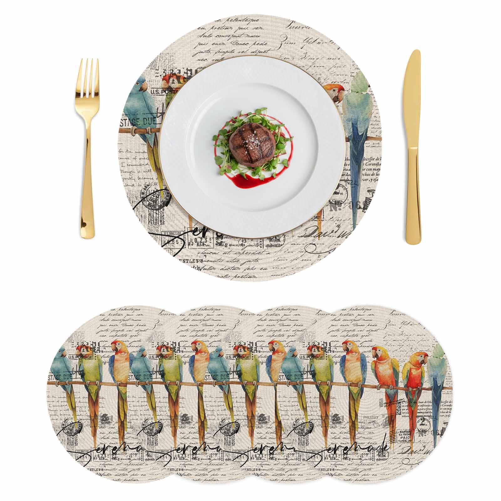 Colorful Birds Round 13 Inch Placemats Set of 4, Vintage Farmhouse ...