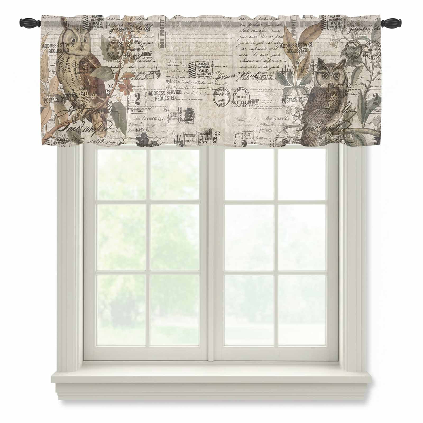 Country Owl Sheer Curtains Valances for Windows Rustic Sping Floral ...