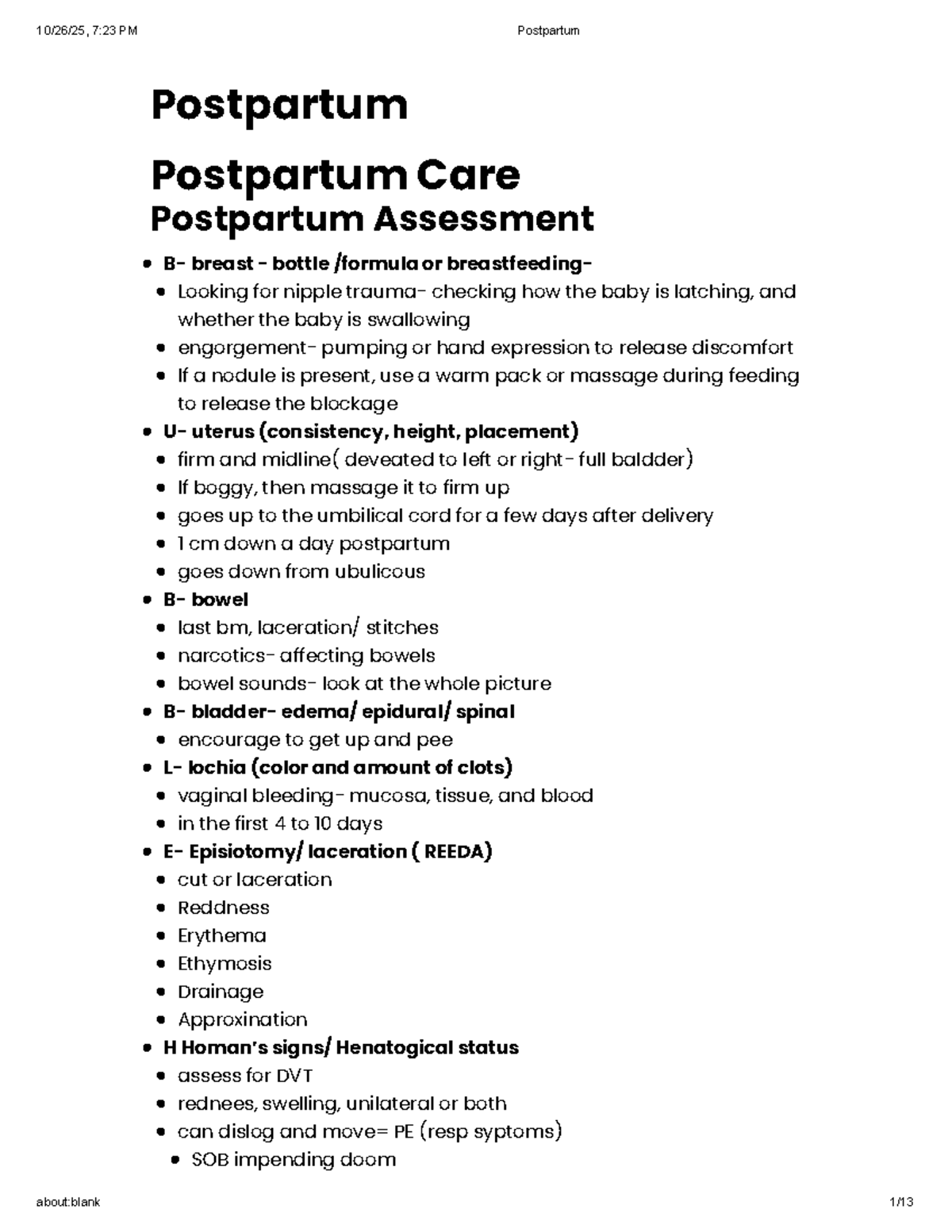 Postpartum Nursing Notes - NURS 3025 - Studocu