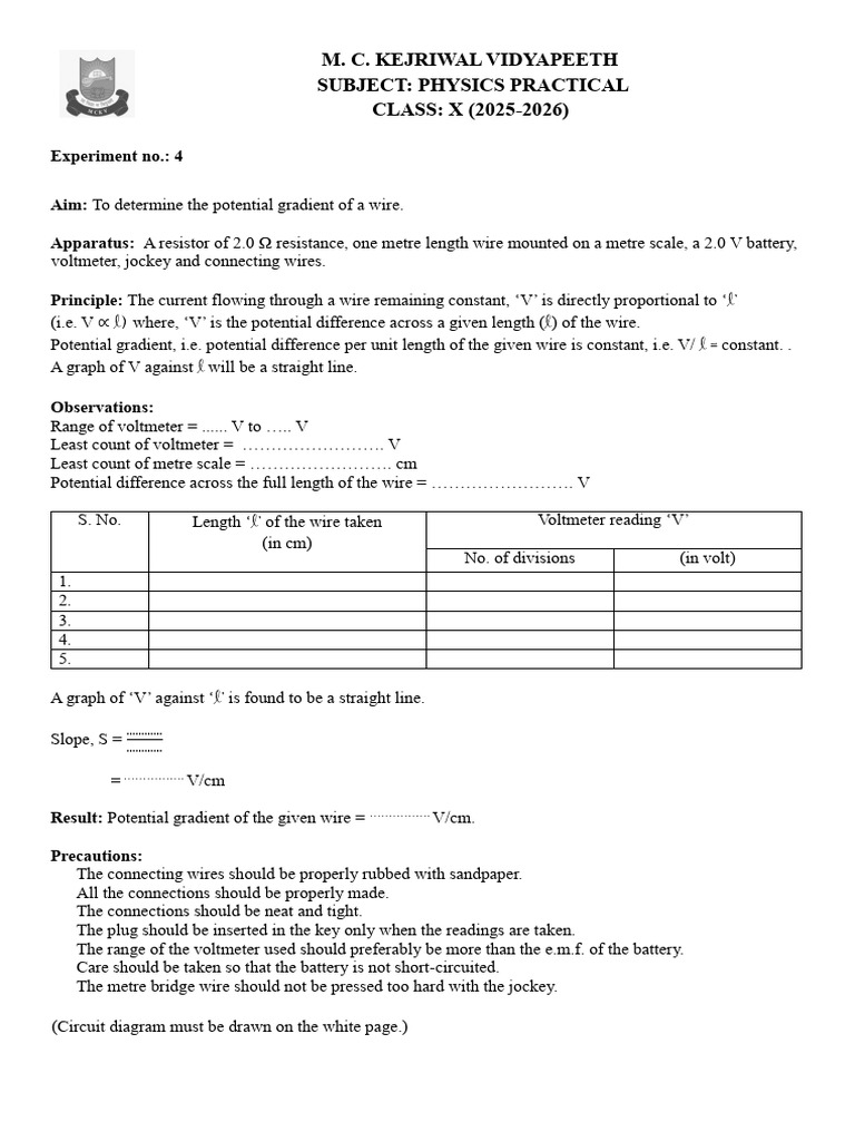 Class 12 Physics practical reading To determine resistance per unit ...