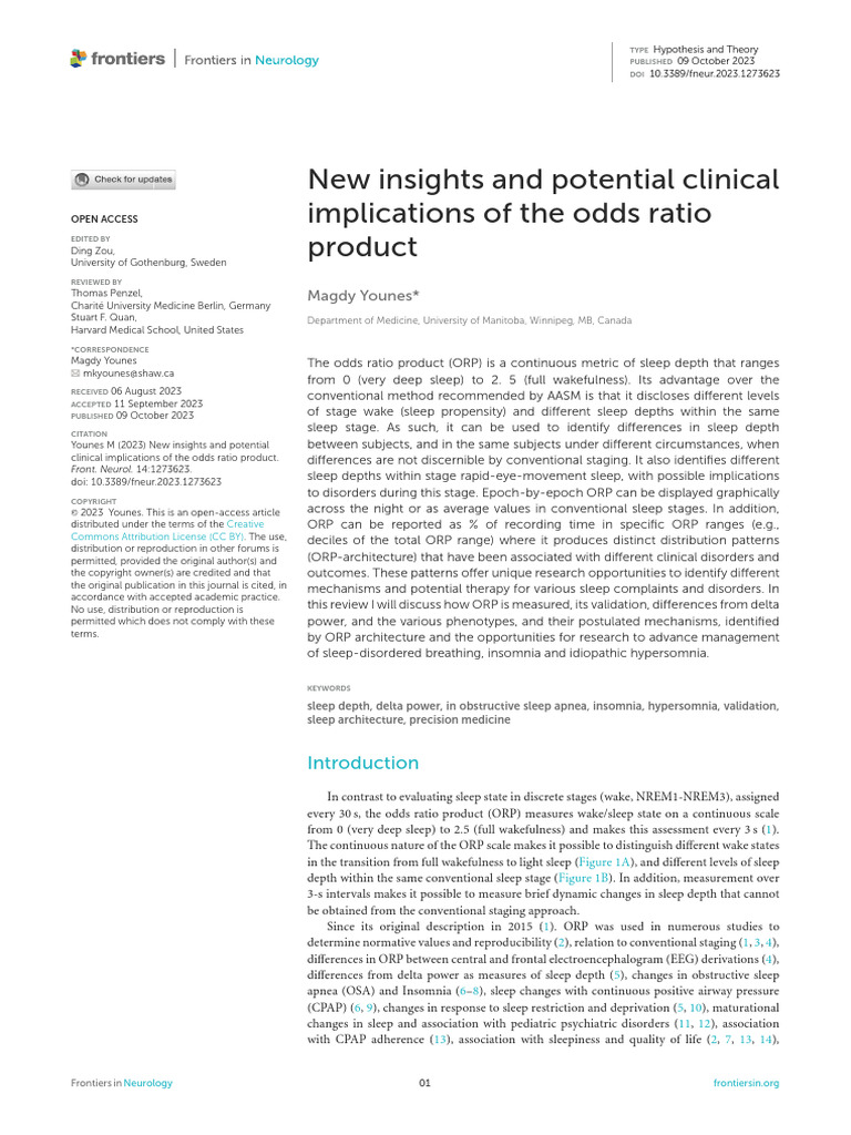 New Insights and Potential Clinical Implications o | PDF | Sleep ...