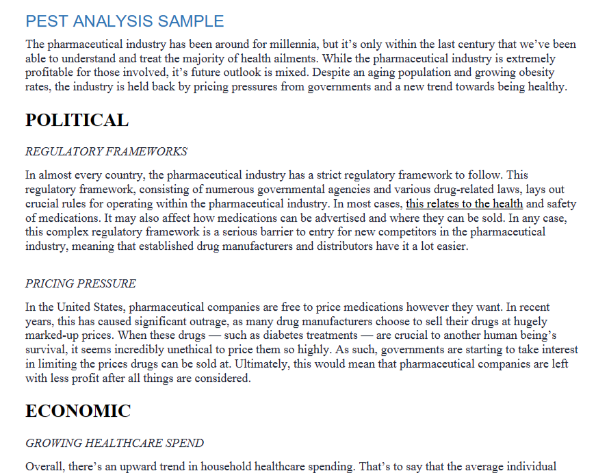 Solved PEST ANALYSIS SAMPLE The pharmaceutical industry has | Chegg.com