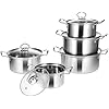 304 Stainless Steel Pots Set nonstick with lids-8 Piece Luxe Silver ...