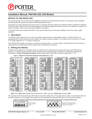 Potter PAD100-LED Installation instructions | Manualzz